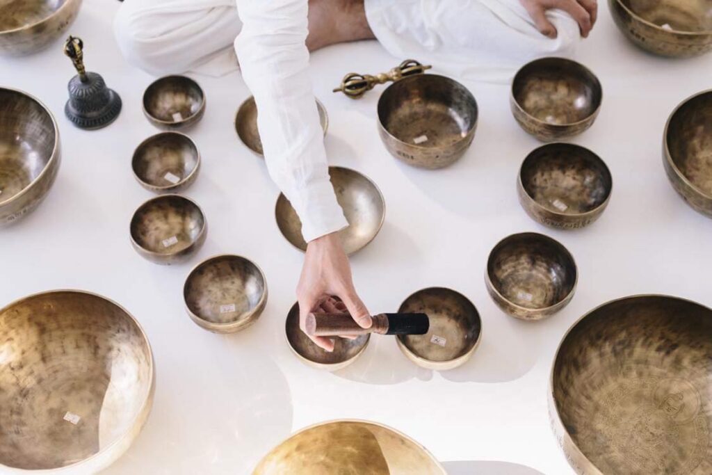ボウルの波動が心地よく心と身体に働きかけ、深いリラクゼーション効果をもたらします。