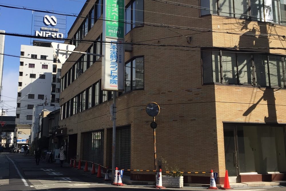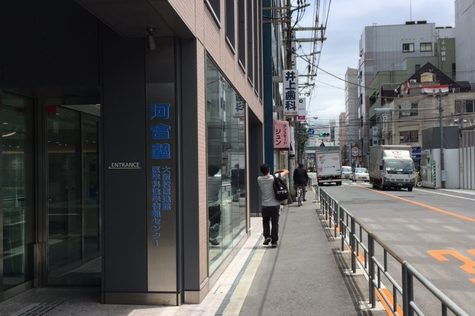 ①1番出口を出て、左手に曲がります。「河合塾大阪校医進館」の前を通ります。