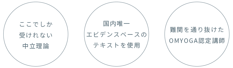 OMYOGAのRYT200は、 「日本で唯一エビデンスベース」 「医師監修で人気の中立理論」を 「難関を通り抜けたOMYOGA認定講師」 から学べます。