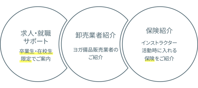 アフターフォローやサポートは、本校スクールとOMYOGAライセンススクールごとに異なります。ライセンスクールのサポート内容は無料説明会にご参加いただき各スクールにお問い合わせください。