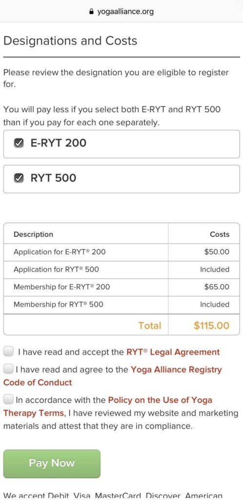 RYT200取得後、RYTの300時間を終了したら、“全米ヨガアライアンス500時間認定ヨガインストラクター”として登録作業が可能になります。