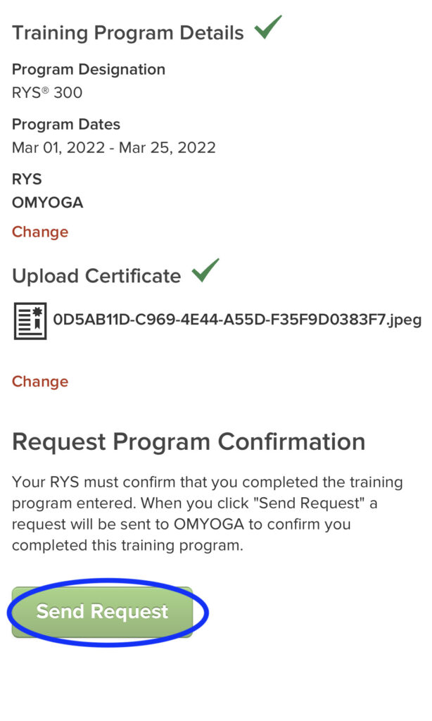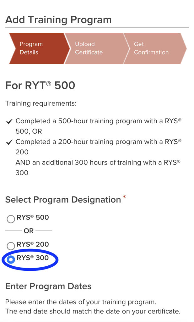 スマートフォン・パソコンのどちらからでも申請することができます。今回は、スマートフォンからのRYT500 (RYT200申請後の残りの300時間)登録と申請の申請手順を紹介します。